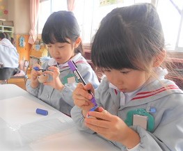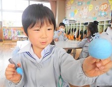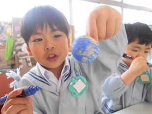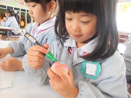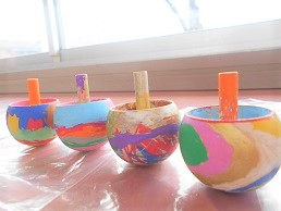 ポスターカラーで色塗りし。世界で一つのオリジナルコマが出来上がりました。