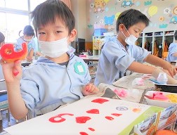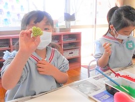 今回の雪組さんの絵の具遊びは「スタンプ」です。