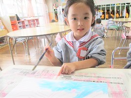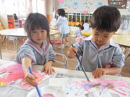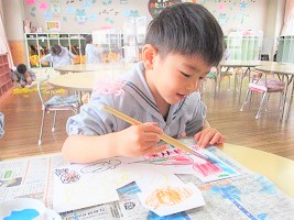今日は花組さんが車の製作仕上げに絵の具を使って