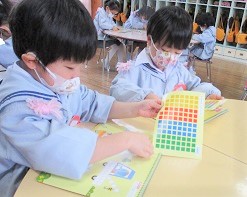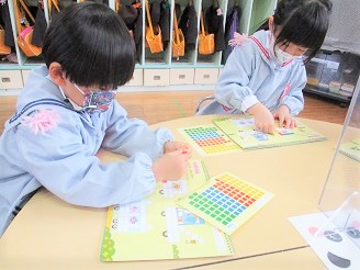 今日は、花組さんが「シールでやってみよう」にチャレンジしました。