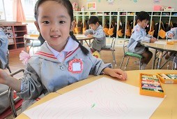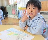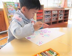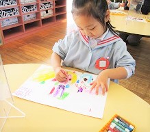今日は、まず下絵のクレヨンから始めました。