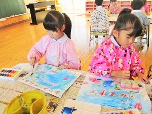 絵の具・習字で使用したスモックを今日、持ち帰りました。