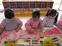 今日は月ぐみさんが大好きな絵の具遊びでした♪