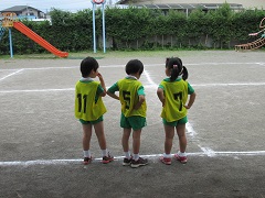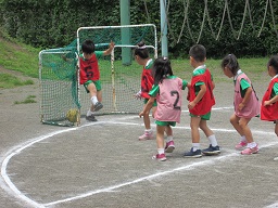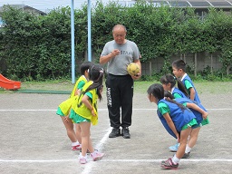 軸足に体重をかけて左右にボールを移動する基礎練習をしてから