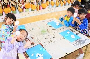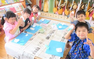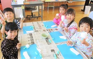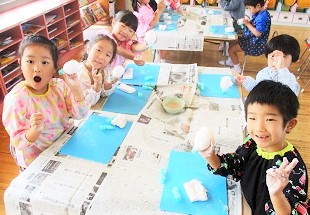 粘土遊びが大好きな月組さん、紙粘土で遊ぶことが楽しくて仕方ない様子・・