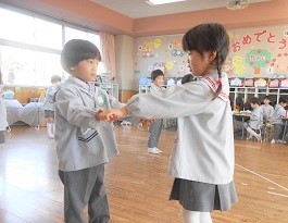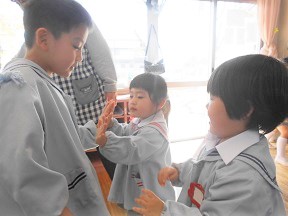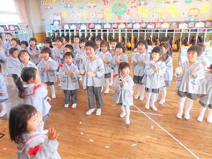 大きなクラスのお友達は小さなクラスのお友達に拍手をもらい