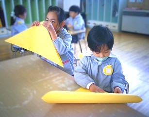 小さなクラスの豆まきの箱は、つき組さんが作ってプレゼントします。