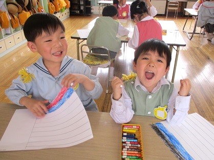 子供の日に向けて、こいのぼり作りが各クラスで始まっています。