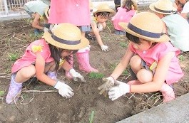 たくさん掘るぞ!! と気合いを入れてみんなで掘りました(^^)