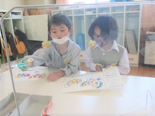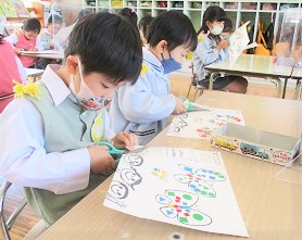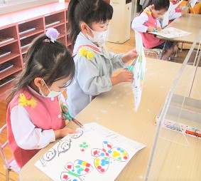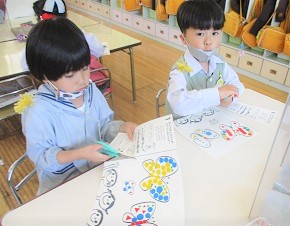 今日は先週から取り組んでいたシール遊びの続きにチャレンジしました。