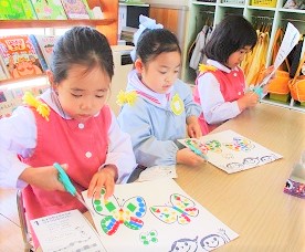 ちょうちょうの羽に模様を作っていきました。