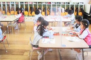 はさみも使って色鉛筆で仕上げていきます。