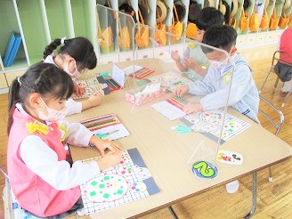 先週から取り組んでいる「シール遊び」に取り組みました。
