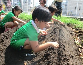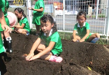 『おいしい大根にな~れ!』と気持ちを込めて、みんなで種を一粒ずつ大切にまきました。