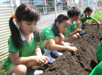 おいしくな~れ! 大きくな~れ!とみんなでお願いしました。