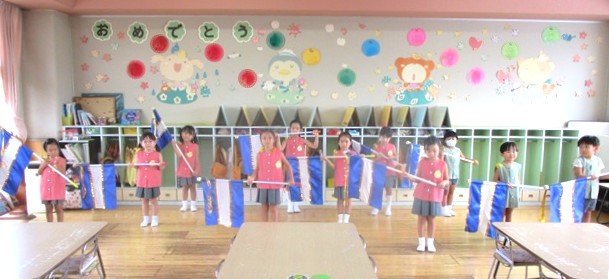 カラーガードの練習を楽しみにしていた月組さんは、ガードを持っただけでニコニコです!!