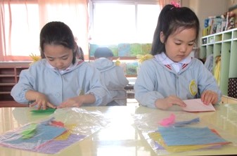 月組さんは、幼稚園のお雛様を飾りつけして、