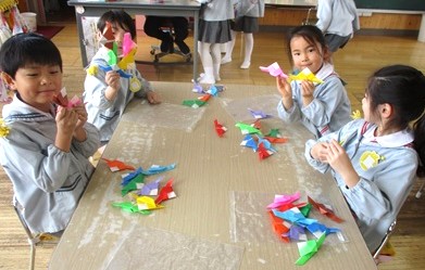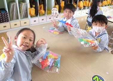 時間をかけてゆっくりと折り方を覚えて、10枚頑張って折りました。