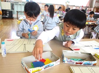 そして、グループのみんなで相談して折り紙を1枚ずつ選ぶので