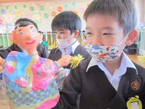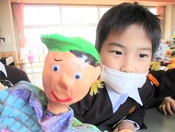 指人形の笑顔も、子どもたちの笑顔もそっくりです!!