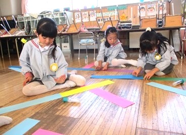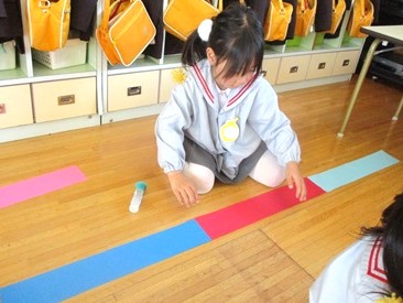 3色自由に選び、のりで順番に貼っていきます。