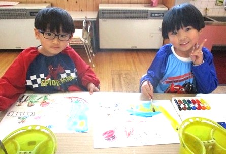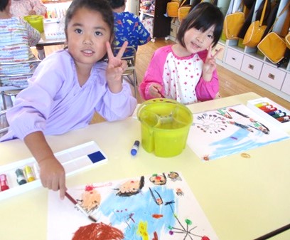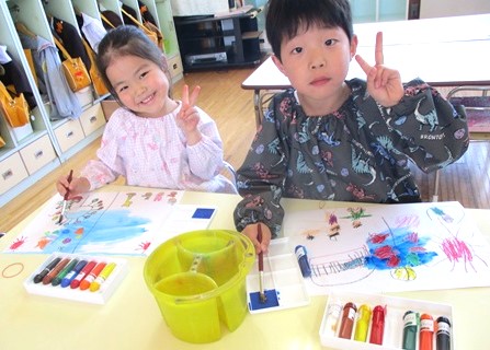 次の絵の具あそびを楽しみにしつつ、今日のはじき絵を完成させました。