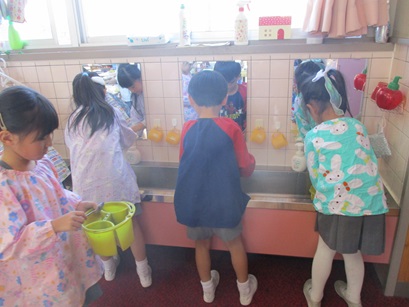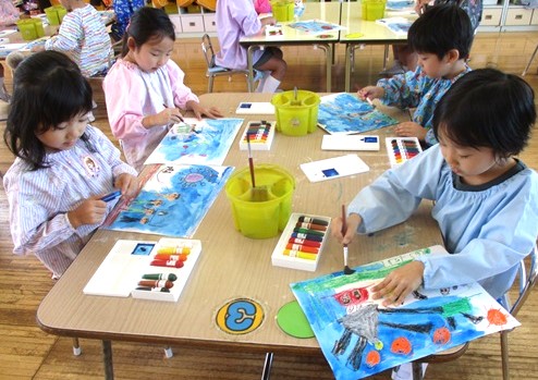 絵の具の使い方や道具の名前、片づけまで・・・。