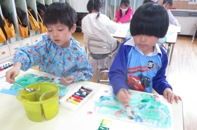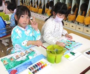 絵の具遊びが大好きな月組さんは、今日を楽しみにしていました。