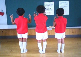 運動会に向けて月組さんが、タンブリン隊の衣装合わせを行いました。