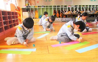 長い色画用紙を使って作るので、机の上に入りきらない!!