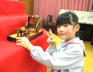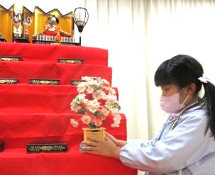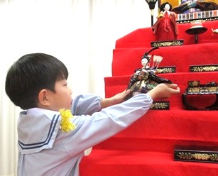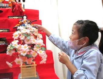 月組さんが幼稚園代表でお雛様を飾りました。