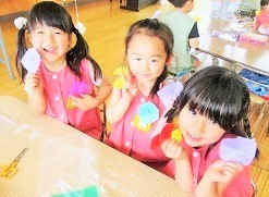 想像しながら好きな色を選んで 折り紙を折りました(^^)