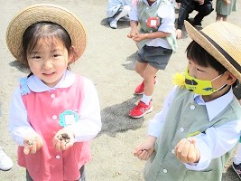 園庭の石拾いを行いました。