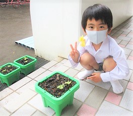 子ども達は、かわいらしい芽を見つけ