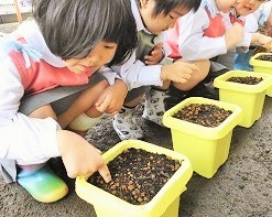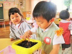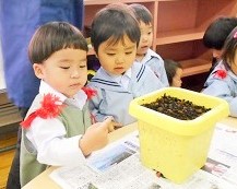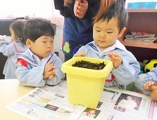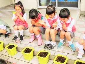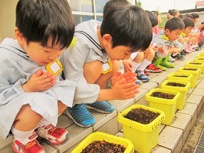 「大きくな~れ。きれいなお花が咲きますように・・・」