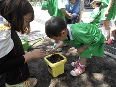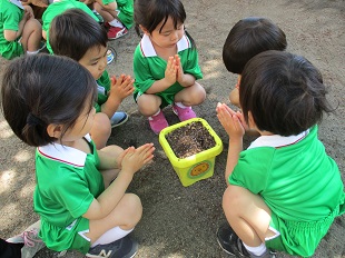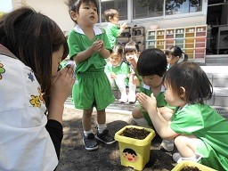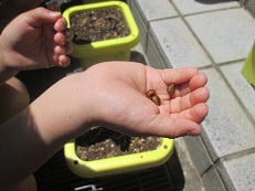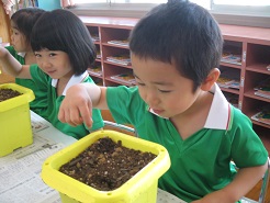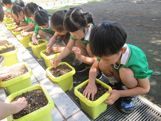 今日はみんなで朝顔の種まきをしました。