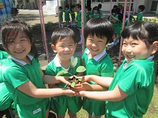 月組さんはその後に野菜の苗植えをしました。