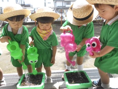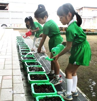 「大きくな~れ。きれいなお花が咲きますように・・・」