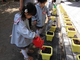 ≪つぼみ≫ 種を蒔いた後 ぞうさんジョウロでお水をあげました♪