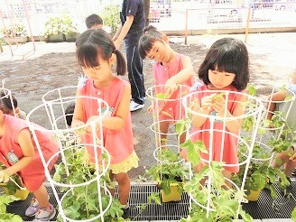 月組さん、雪組さんは夏休み中に朝顔観察画の宿題があります。