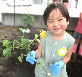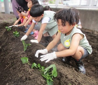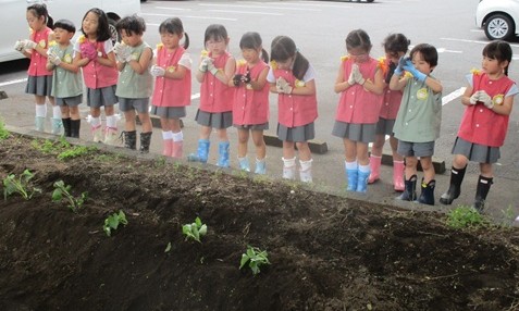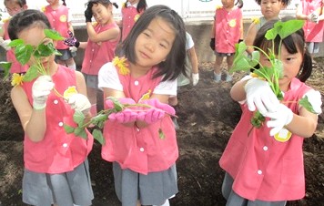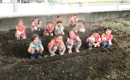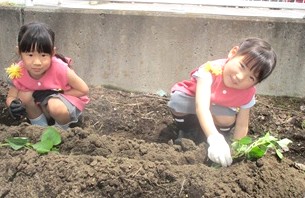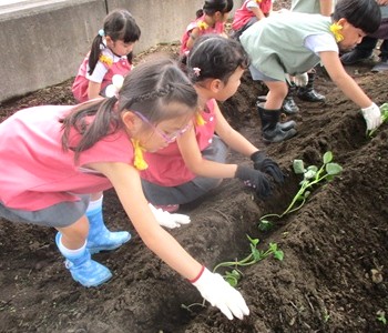 歯科検診後、月組さんは楽しみにしていた「さつまいもの苗植え」をしました。