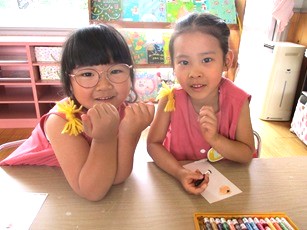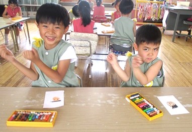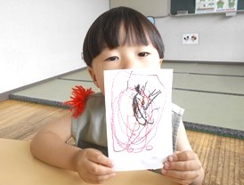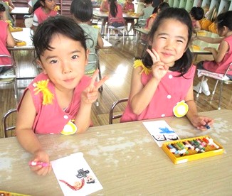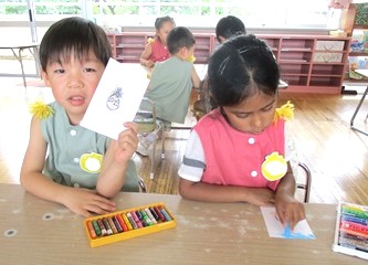 今日は、つぼみ組さんと月ぐみさんが心を込めてプレゼントのお絵かきをしました。