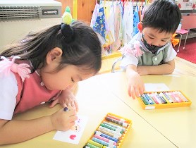 子どもたちは、大好きな祖父母様のために一生懸命お絵かきをしました。