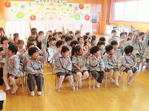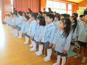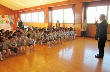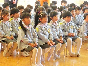 子供たちの元気いっぱいな声が響いた、三学期始業式風景です。