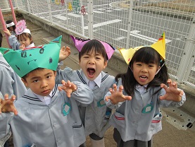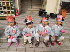年の数だけお豆を食べて、 鬼に豆をまきました‼