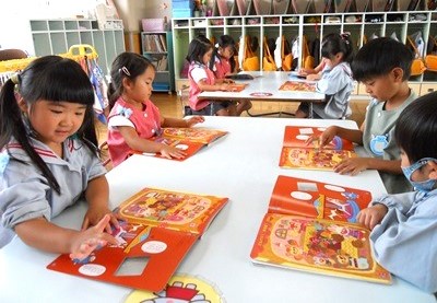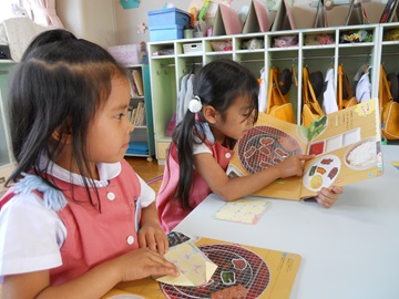 楽しく子供たちと絵本を読む≪絵本観察≫を行っています。