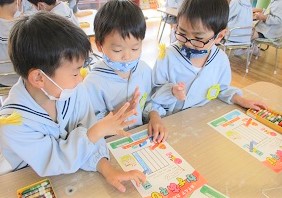 シールを貼って街づくりをしました。