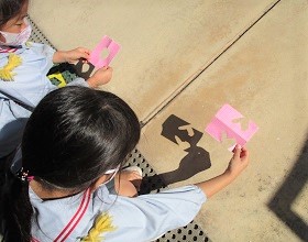 型を作り、地面に映る「影」をみんなで楽しみました。
