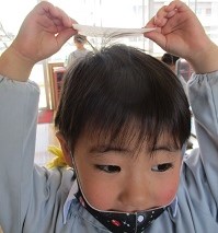 最後には、鏡の前に立ち 逆立つ髪の毛に大爆笑でした!