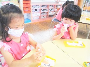 色々な食べ物をチョキチョキチョキチョキ・・・。